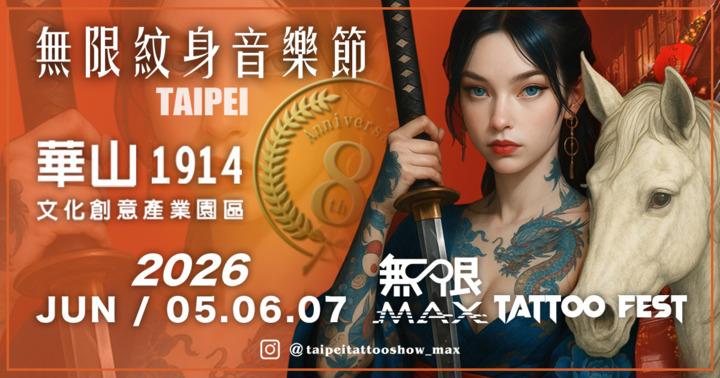 【2026 台北無限 MAX 紋身音樂節】 亞洲最具代表性的 紋身 × 音樂 × 城市文化 跨界盛會——台北無限 MAX 紋身音樂節,將於 2026年 6 月 5、6、7 日在台北藝術文化地標《 華山 1914 文化創意園區 》盛大登場。 台灣唯一結合紋身藝術、音樂現場與多元文化展